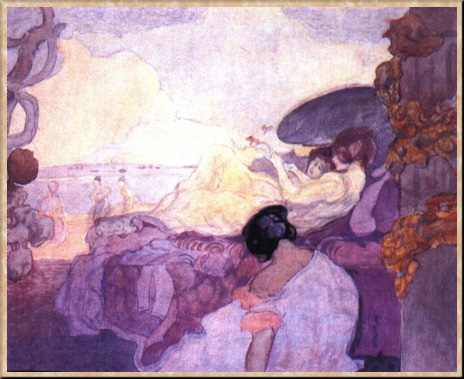 Женщины среди пейзажа. Эскиэ панно. 1910-е. Акварель, графитный карандаш